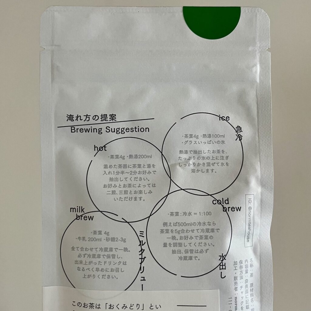 パッケージも可愛い。裏面には様々な淹れ方が丁寧に記載してあります。ミルクブリューってのもあるの!お茶って自由なのねって感じです。